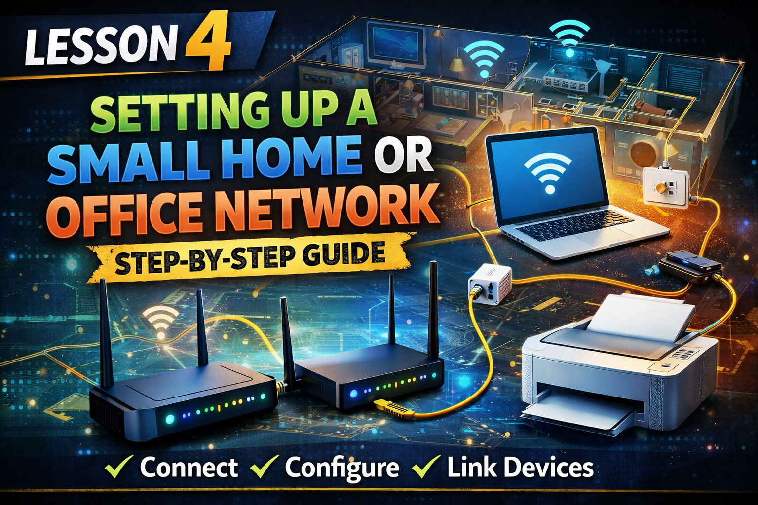 This lesson introduces the fundamental concept of computer networks and explains why they are essential in everyday life and business. You will learn what a network is, how it enables communication between devices, and why it plays a critical role in modern technology. The lesson also provides a clear overview of common network types, including LAN, WAN, Wi-Fi, and the Internet, helping you understand how they differ and where they are used.
